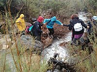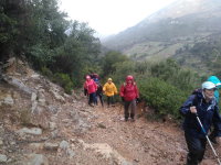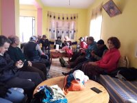 Le parcours de 13 km part du village Melloussa et passe par Koudiet Daylalech pour ensuite traverser la vallée Bouzmane et monter vers le douar Dlem Dir. Il part ensuite sur la crête à droite vers Koudyet Sidi Bounasra et rejoint le village Ain Said. A la sortie de ce village, et à l’heure de la pause déjeuner, nous étions invité à un goûter imprévu par une très généreuse famille du village. Le retour à Melloussa se fait sous une pluie battante et sur un terrain de plus en plus glissant mais la solidarité et la bonne humeur du groupe étaient maîtres de la situation ce qui a maximisé le plaisir offert par ce parcours.