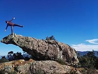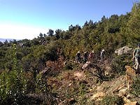Le deuxième parcours, pour lequel les autres 15 adhérents on opté, est un peu plus long et plus exigeant. C’est une boucle de 15,5 km atteignant le sommet de Sidi Habib (918 m). Le groupe part de l’extrémité sud du village Jbel Lahbib puis entame la montée par le flanc sud passant par la forêt Rehamna et douar Essaf. Une fois au sommet, c’était le temps de la pause déjeuner, avec 10,5 km au compteur déjà. Le repos sous les chênes centenaires autour du mausolée est inestimable.