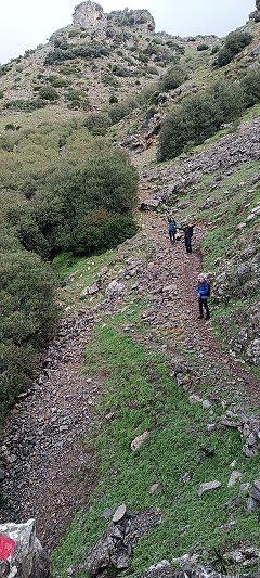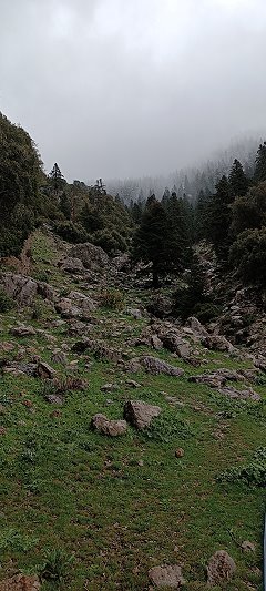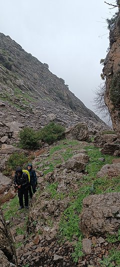 A un moment d’inattention nous quittons le sentier menant au sommet de Tissouka et empruntons celui du sommet d’Al Borj. Quand nous atteignons le sommet de celui-ci nous nous rendons compte de l’erreur. Nous décidâmes alors de rebrousser chemin pour rectifier le tir. Cette petite erreur nous a couté presque une heure de retard sur notre parcours. Tout ça sous une pluie fine et glaciale.