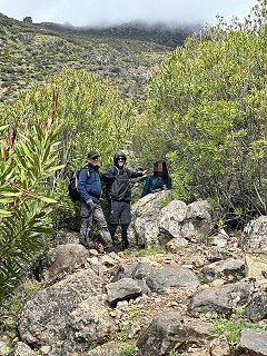 Le samedi matin les participants décidèrent de prendre le petit déjeuner dans un café avant de commencer la marche. Le coup d’envoi fut donné vers 9h. Il faisait encore frais et le ciel couvert de nuages gris. Les sommets des montagnes enfoncés dans les nuages annonçaient une journée mouillée. En effet, à mi-chemin de la montée vers le sommet il commença à pleuvoir quelques participants décidèrent de rebrousser chemin alors que les autres continuèrent leur ascension. Après une demi-heure sous la pluie tout le monde.