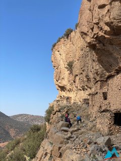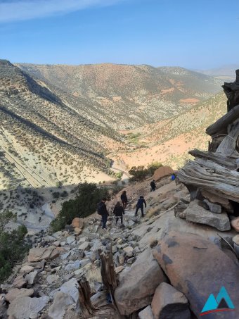 Une sortie culturo-sportive dans la région d’Azilal, limitrophe avec celle d’Imilchil, ayant pour but principal la visite des greniers collectifs d’Ait Abdi. Une région qui abrite à elle seule 71 greniers collectifs sur les 550 que compte le Maroc et qui se situe dans la partie sud du Géoparc du M’goun. Des magasins (Ighrmanes/Igoudars) haut perchés dans la paroie d’une falaise, longue de près de 3 km, quasi impraticable et très difficile d’accès. Un site qui reflète le génie architectural et le mode de vie de nos ancêtres Amazigh.