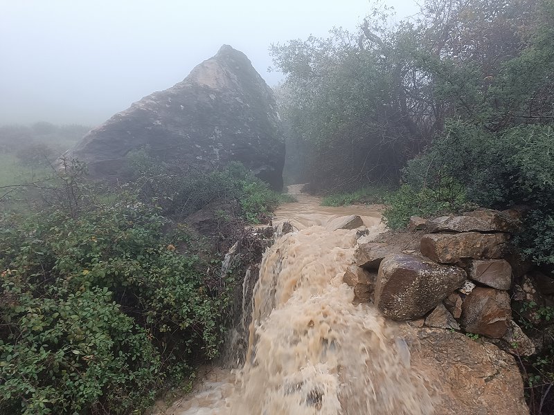 La descente vers le hameau (El Berak) est périlleuse. Les sentiers forestiers sont glissants. Les ruisseaux que nous avions n’arrêtent pas d’augmenter en volume. Il faut être vigilant lors de la traversée de ces oueds improvisés. La boue est omniprésente. Finalement, après plusieurs heures de marche intense, nous apercevons les premières maisons de Bghaghza, synonymes de chaleur et de bouffe.